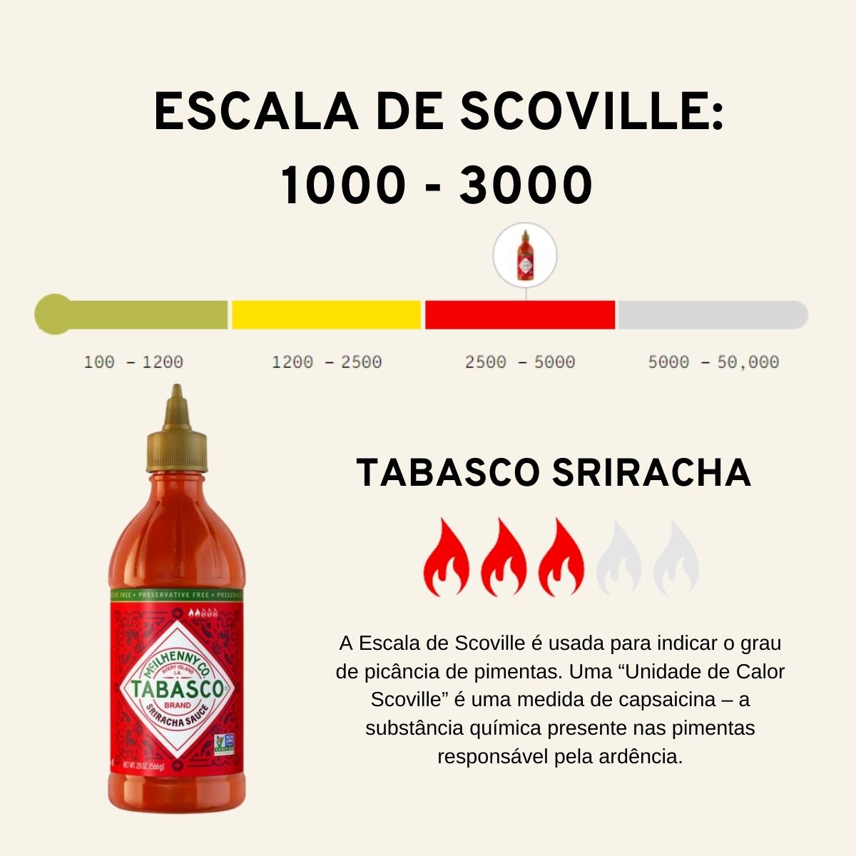 O molho TABASCO® Sriracha é um autêntico molho de pimenta tailandês. Um toque da Louisiana na receita clássica tailandesa, este molho Sriracha é uma mistura magistral de todos os sabores picantes, doces e salgados da culinária do Sudeste Asiático, com um toque de picância do clássico TABASCO® vermelho. Salpique um pouco deste molho em refogados, macarrão e sopas, ou em qualquer receita que peça a deliciosa combinação de pimentão doce e alho. Sem glúten, conservantes e sem gordura, o Molho TABASCO® Sriracha vem em embalagem de 300g.